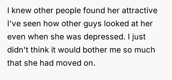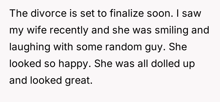 OP's motivations appear rooted in regret over loss rather than a mature plan for repair. Seeing his wife happy and attractive after separation has triggered a powerful sense of possessiveness and nostalgia, often termed 'grass is greener syndrome' or loss aversion regarding a known partner. His desire to 'reconsider' ignores the fact that the wife has clearly invested in moving forward and healing outside of the marriage that caused her distress. The wife’s shift in appearance and happiness is a result of gaining distance from the source of her pain (the marriage and the betrayal), not necessarily an invitation to return.