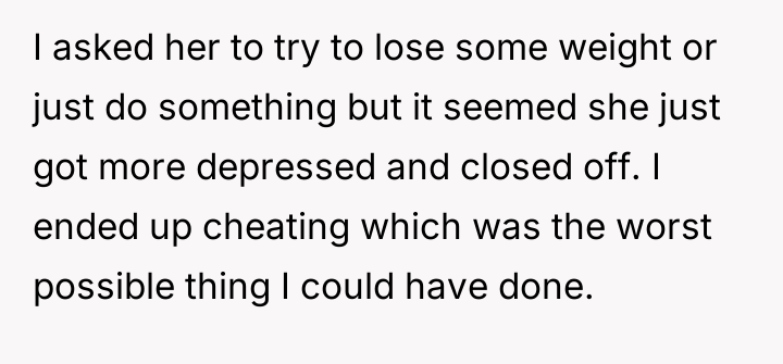 Dr. John Gottman, a renowned relationship expert known for his extensive research on marital stability, often emphasizes that trust and emotional safety are the absolute cornerstones of a lasting partnership. In this scenario, the husband (OP) violated the fundamental contract of fidelity, an action that severed the emotional bond and security his wife relied upon. The subsequent difficulty stemmed from a long, unaddressed relational decline: the wife's severe depression following miscarriages led to physical and emotional withdrawal, which in turn extinguished the husband's attraction and led to his decision to cheat.