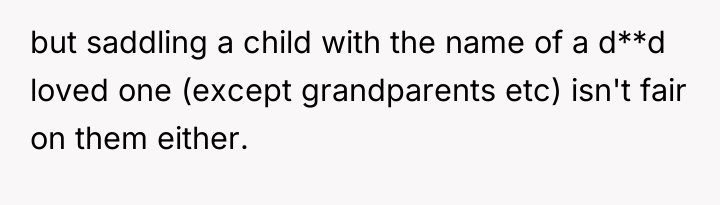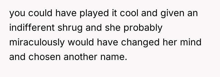 The motivations of the sister appear rooted in a desire to integrate the fiancé's memory into her new family unit, framed as an 'honor' or a 'miracle.' However, this gesture bypasses critical considerations of emotional labor and boundary setting. By expecting applause for the name choice, the sister demonstrates a lack of empathy for the OP's unique relationship with the deceased. The mother's reaction further complicates the dynamic by dismissing the OP's pain, implicitly siding with the sister and validating the idea that the OP's grief should yield to the sister's desires.