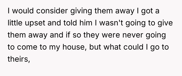 The sister's position—demanding the OP surrender their pets for visits—demonstrates a failure to mediate fairly, placing the burden entirely on the OP. Professionally, the OP's anger was justified given the disrespectful and non-negotiable nature of the demand. However, the appropriate response would have been to calmly state, 'I will not rehome my pets, and if you cannot accept them in my home under reasonable temporary containment measures, we will need to find neutral meeting grounds until you are more comfortable.' This maintains boundaries without resorting to reciprocal insults.