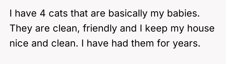A woman’s love for her four cats, her cherished companions and family, is met with unexpected rejection when her sister’s husband deems them a threat to their newborn’s health. Despite years of care and a spotless home, the simple joy of sharing a meal together becomes a battleground for acceptance and understanding.