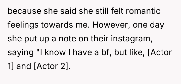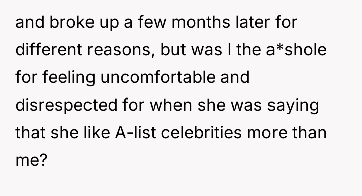 AITAH for getting uncomfortable because my (now ex) girlfriend was crushing on 2 actors?