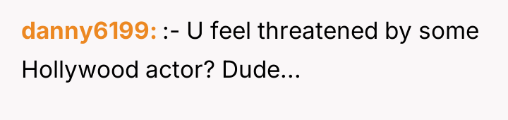 The boyfriend's feelings of discomfort and disrespect are valid responses to feeling that his position in the relationship was publicly undermined, even if intended humorously. The girlfriend’s reaction—initially agreeing and then retracting that understanding while expressing frustration—demonstrates poor emotional regulation and a potential unwillingness to tolerate her partner's vulnerability. Her justification relying on the logical absurdity (the actors' age/fame) dismisses the partner's emotional reality, which often signifies a boundary misalignment.