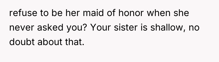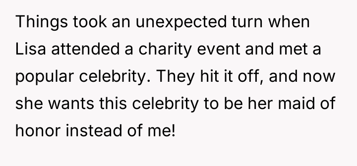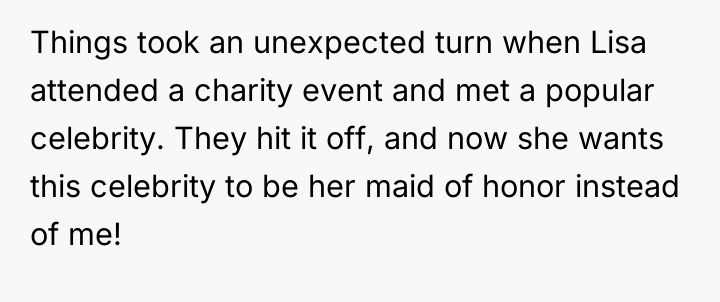 AITAH for Refusing to Be My Sister’s Maid of Honor After She Chose a Celebrity Over Me?
