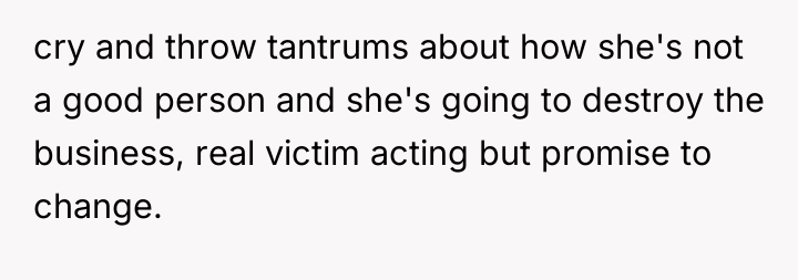 According to Dr. Ramani Durvasula, a clinical psychologist specializing in narcissistic patterns, repeated cycles where one person takes on responsibility while the other refuses to learn or actively sabotages efforts through emotional outbursts often establish a dynamic of 'learned helplessness' coupled with emotional manipulation. In this scenario, the mother-in-law (MIL) successfully avoided accountability for financial literacy and business management by triggering guilt and pity when confronted, which effectively made the daughter-in-law (OP) the sole functional operator.