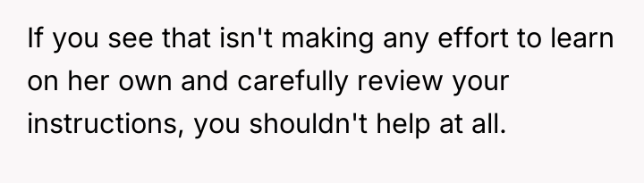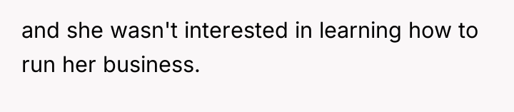 Was walking away the appropriate final action given the family relationship and the mother-in-law's claimed helplessness, or did the years of training and investment obligate the individual to provide a final, comprehensive handover? Should family obligations supersede sound business practice when one party refuses to internalize necessary skills?