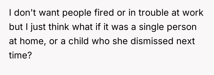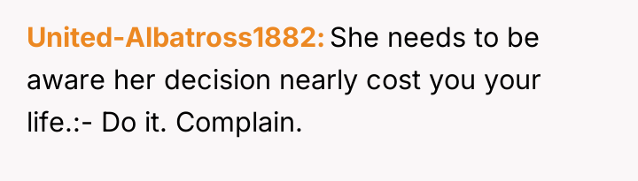 The poster's action of calling an ambulance was appropriate; her life was in immediate danger. While concerns about an individual's job are understandable, systemic failures resulting in near-fatal outcomes require formal review. The constructive recommendation is for the poster to file a formal complaint focused specifically on the systemic process failure and the triage protocol breach, rather than requesting punitive action against the individual. This approach supports institutional learning (improving training on sepsis alerts) without necessarily leading to termination.
