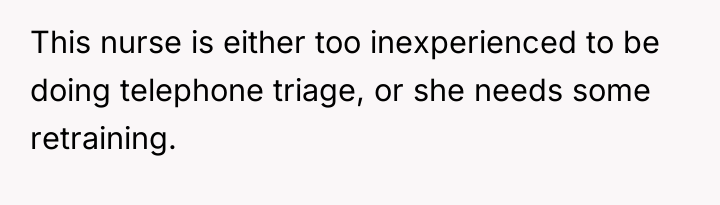 The original poster faced a critical medical situation where her past history of sepsis made her high-risk, yet her immediate concerns were dismissed by a triage nurse over the phone, leading to a severe deterioration in her health requiring emergency hospitalization. Her conflict lies between the instinct to protect the professional's job and the moral imperative to report potentially dangerous negligence that nearly cost her life.