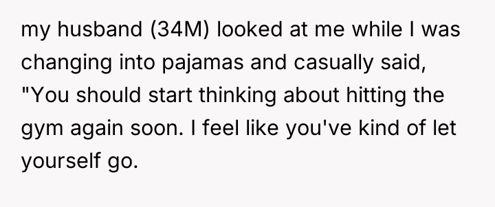 AITA for snapping at my husband after he said I " let myself go" three months after giving birth?