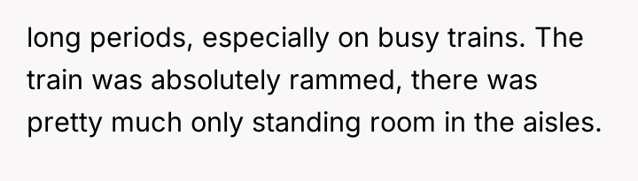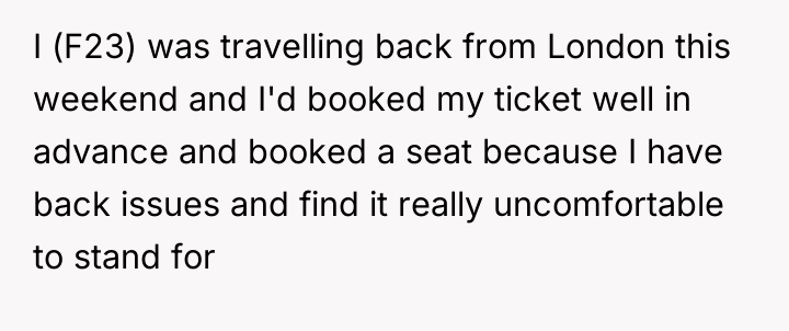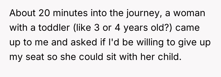 AITA for refusing to give up my reserved seat on a packed train to a mum with a toddler?