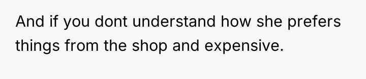 The central conflict lies between the value placed on thoughtful, personal sentiment versus the perceived necessity of expensive, practical items requested by the recipient. Should the gesture of heartfelt effort override specific material demands in gift-giving, or is the recipient justified in expecting only items that fit their pre-established needs and aesthetic?