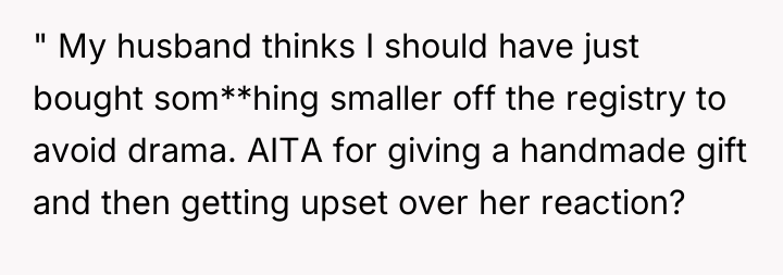 AITA for giving my sister-in-law a handmade gift instead of buying from her expensive registry?