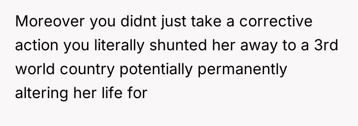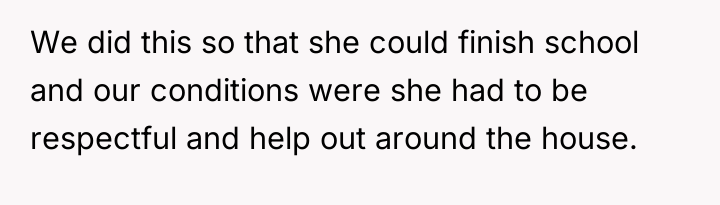 The primary challenge here involves navigating the intersection of marital unity, responsibility toward a relative, and the difficult task of parenting/mentoring a challenging teenager. The original agreement set clear expectations: respect and contribution in exchange for housing and support for education. The sister's behavior—rudeness, truancy, and direct verbal defiance ("you were no one")—constituted a fundamental breach of these terms. When an individual living under another's roof rejects the basic rules of that environment, the host has a right and often a responsibility to enforce consequences. The OP's action, while drastic (sending her to a third-world country), was a direct response to sustained disrespect that compromised the safety and order of his primary family unit (his marriage).