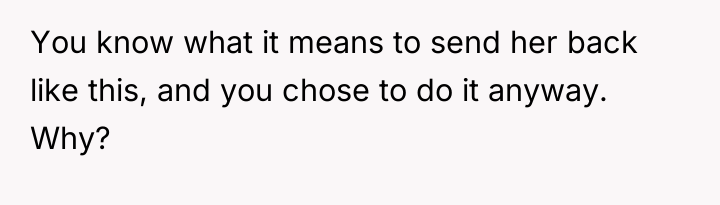 The initial situation involved a difficult act of establishing necessary boundaries against repeated disrespect from a dependent family member, leading to a severe relationship strain with the spouse. The person who made the decision felt justified by the broken agreement but is now facing the emotional fallout of their decisive action.