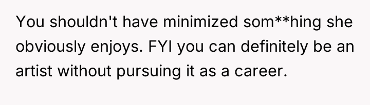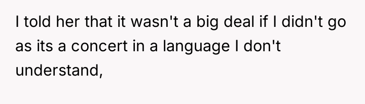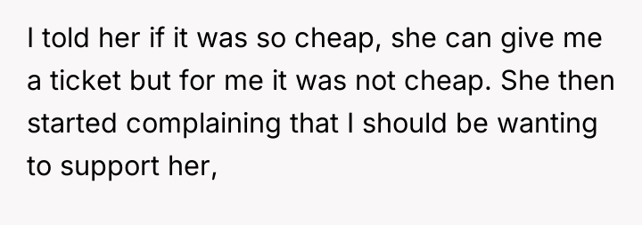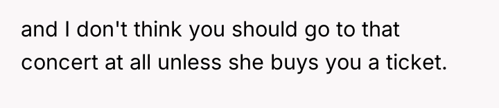 The core of this situation lies in mismatched expectations regarding emotional labor and financial contribution. The Original Poster (OP) operates from a scarcity mindset, where every dollar is allocated for necessity and future security, a reality reinforced by their family situation. Rani, conversely, operates from a place of financial security provided by her mother, leading her to perceive support as an expression of friendship rather than a measurable financial commitment. The OP’s comment—that singing was 'not like this is your career'—was a significant misstep. While factually true, it attacked the *value* of Rani’s hobby and effort, not just the ticket price. This implied that Rani's current activities are frivolous, triggering defensiveness and anger because it felt like a dismissal of her personal joy and effort.