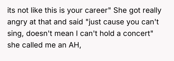 AITA for telling a friend that shes not an artist when she pressured me to attend her expensive 'concert'