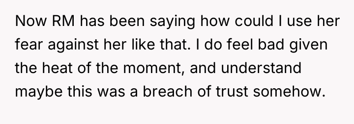 The OP's action was an understandable, though emotionally damaging, tactic under pressure given RM's non-compliance and previous physicality. A more constructive approach would have involved a final written notice detailing the consequences (e.g., formal eviction process or small claims court) before immediately escalating to involving law enforcement based on a known phobia. Future situations should prioritize established communication protocols and legal civil remedies over exploiting known psychological triggers.