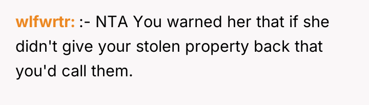 The original poster (OP) felt justified in using the threat of law enforcement to retrieve her property and enforce the rent agreement, despite knowing the tenant's severe anxiety regarding police presence. This action created a significant breach of trust, highlighting the conflict between the OP's need for financial security and the tenant's deep-seated fear.