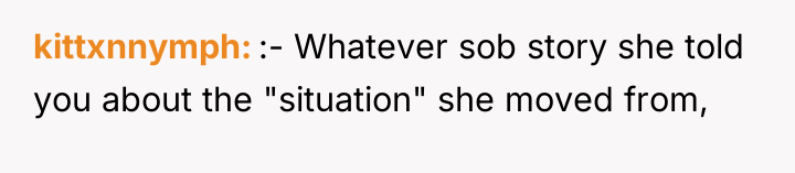 In the quiet tension of a shared home, a fragile trust shattered over something as simple as a WiFi cord. Two women, bound by circumstance but divided by fear and resentment, faced an unbearable clash—one driven by necessity, the other by a haunting past. The air was thick with unspoken pain, as a desperate plea for respect met a paralyzing terror that no one could easily undo.