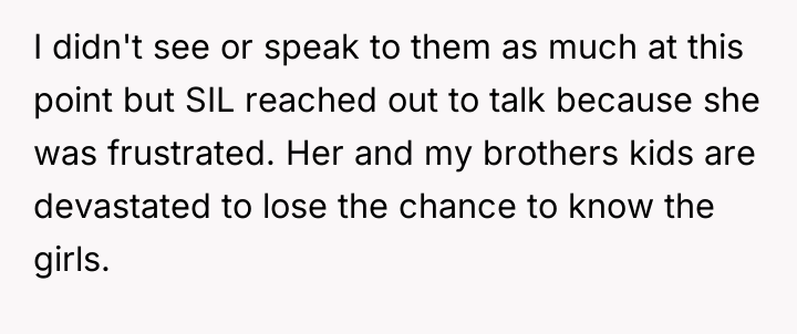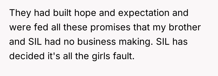 AITA for telling my SIL not to blame my nieces for her and my brother's mistakes?