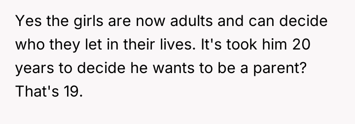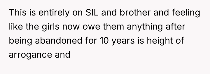 The OP's actions were appropriate in defending the nieces against unfair blame; they correctly identified the mistakes as belonging to the brother and SIL regarding abandonment and false promises, respectively. For future interactions, the OP should continue to support the nieces' boundaries. The brother and SIL must cease blaming the victims of their earlier abandonment and focus on accepting the current reality, recognizing that trust, once broken over decades, cannot be instantly restored by parental decree or wishful thinking.