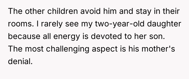 As noted by Dr. Gail Gross, a child development expert, 'When a primary caregiver becomes completely depleted, the entire family system is at risk of collapse.' This situation perfectly illustrates the strain on a blended family structure when one child requires near-total, crisis-level care, especially when that care intersects with past trauma.