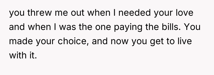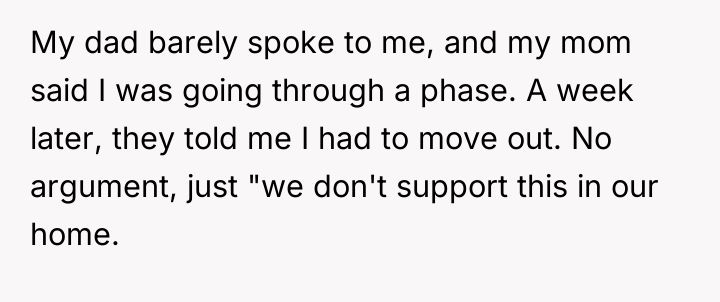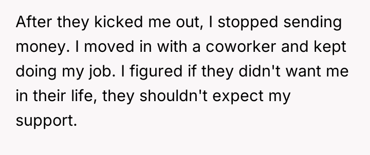 From a professional standpoint, the OP's initial decision to cease financial contributions immediately following the expulsion was a necessary step in establishing financial and emotional autonomy, directly linking their support to their acceptance within the household structure. The recommendation for the OP is to maintain the current boundary. Future engagement should only occur if the parents first offer a genuine apology for the expulsion and demonstrate a commitment to understanding and respecting the OP's identity. Financial aid, if considered later, should be framed as a gift, not an obligation, and conditional upon mutual respect.