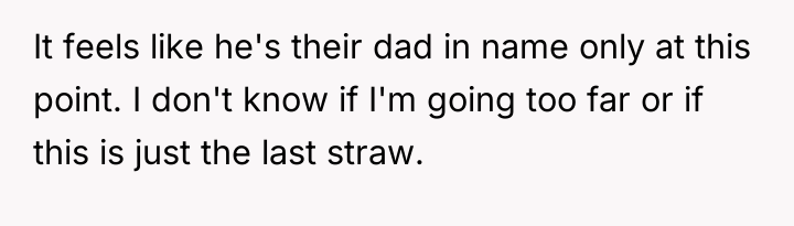 The mother’s action was appropriate given the documented history of failed direct communication and the failure of the father to meet minimum parenting expectations. A constructive next step, beyond the initial threat, would be to immediately consult with a family law attorney to understand the precise legal remedies available, framing the subsequent legal filing not as punishment, but as an official request to formalize existing, unmet parental duties.