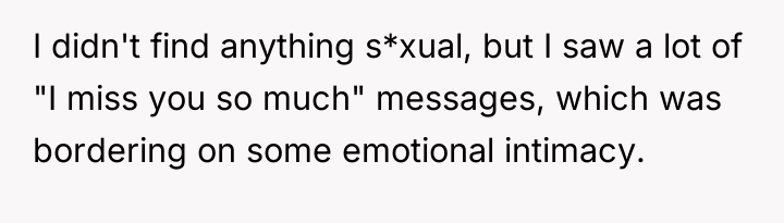 Dr. John Gottman, a renowned relationship expert focusing on marital stability, emphasizes that successful long-term relationships depend on mutual respect and turning towards bids for connection, even in moments of stress. In this scenario, the wife’s sustained "I miss you so much" texts represent a significant breach of emotional fidelity, creating an intimacy outside the primary partnership, which is often a precursor to physical infidelity or deep relational disconnection.