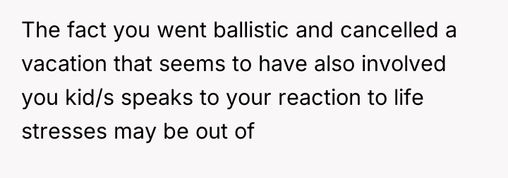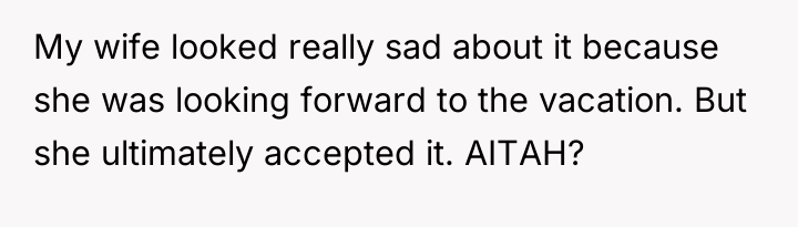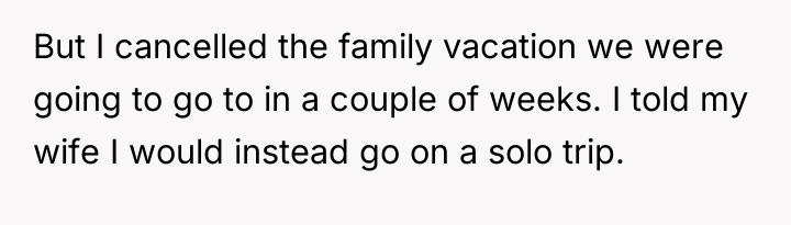 'AITAH for cancelling my family vacation after my wife admitted to inappropriate texting her guy best friend'