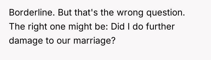 The husband's actions were understandable given the violation of trust, but perhaps not entirely constructive for long-term healing. A more effective approach would involve a discussion, perhaps facilitated by relationship counseling, to define clear, non-negotiable boundaries regarding outside emotional connections. Future handling should focus on collaborative repair, such as defining what trust looks like moving forward, rather than imposing solitary consequences that punish both parties by removing shared positive experiences.