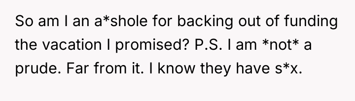 AITA for putting the kibosh on Sons' n**ed vacation?