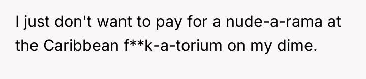 The father's discomfort stems from a conflict between his broad acceptance of his sons' sexual activity (evidenced by providing condoms) and his specific refusal to fund an environment explicitly centered around sexual themes and nudity (the Hedonism resort). This suggests a psychological principle at play: enabling versus endorsing. The father is willing to enable safe, private adult behavior but draws a hard line at actively endorsing or paying for an overtly sexualized group experience. While his desire to maintain financial boundaries around specific activities is understandable from a personal ethics standpoint, backing out of a previously established reward creates a significant issue regarding reliability and perceived conditional love.