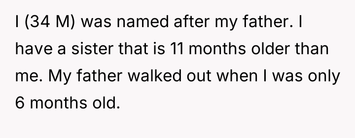 A man carries the weight of a fractured childhood, named after a father who left before he could even walk. Abandoned at six months old, his life is marked by fleeting appearances and a cold distance that never quite heals, leaving him to grapple with the silence where a father's love should have been.