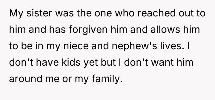 Given the intense personal history of neglect versus the sister's push for familial inclusion, should the priority be the protection of one's own peace and identity, or the maintenance of sibling relationships and the possibility of extending forgiveness to an estranged parent?