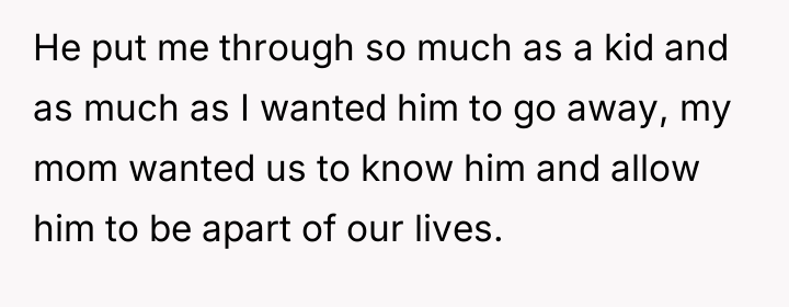 Surrounded by the warmth of step-siblings and a stepmother who showed what family could be, he still feels the sting of a bond never fully formed. Years of neglect and missed moments have carved a quiet ache, a longing for recognition that his father never gave, as he silently questions what it truly means to be a dad.