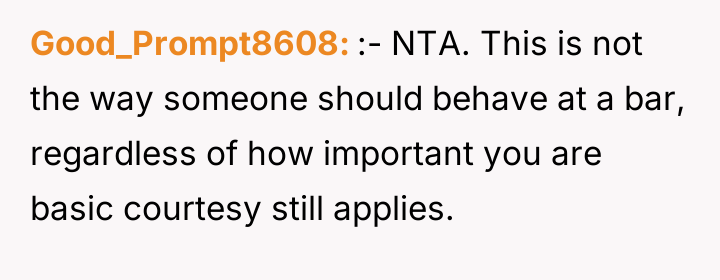 Was the bartender right to strictly enforce the policy against the step-mother of the bride taking alcohol directly from behind the closed bar, or should they have prioritized social deference given the event context? The debate rests on whether professional rules must always yield to perceived social hierarchy or family connection.