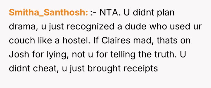 From a purely social standpoint, the poster handled the immediate confrontation imperfectly by delivering the information abruptly at a party, though their later action of sending proof was a necessary step to validate their reality. The most constructive future approach would involve communicating such sensitive historical information in private, perhaps via text before the party, or immediately after leaving, thereby granting Claire space to process the information without the pressure of Josh’s immediate denial in the room. However, the poster was not wrong for stating the truth.