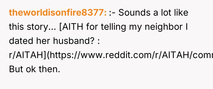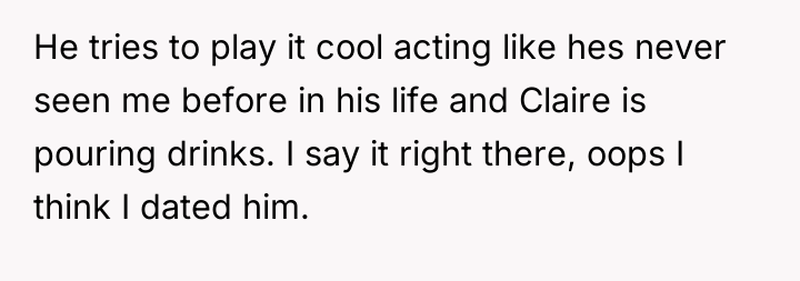 The original poster found themselves in an unexpected and highly uncomfortable social situation, where a past casual romantic partner was introduced as the boyfriend of a friendly new neighbor. The central conflict stemmed from the revelation of this shared history, forcing the poster to confront Josh's past behavior while simultaneously causing distress to their new neighbor, Claire.