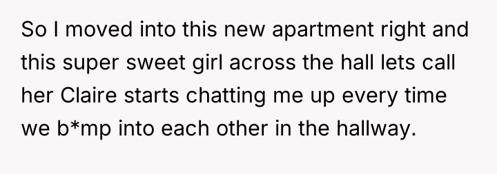In the quiet hum of a new beginning, a chance encounter with a radiant neighbor named Claire promised warmth and friendship—sunshine wrapped in candles and whispered secrets. But beneath the soft glow of candles and laughter lay a twist of fate, where past and present collided in the unlikeliest of hallways.
