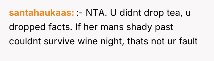 AITA for dropping the tea that your boyfriend used to crash at my place during your cute lil wine night lol?