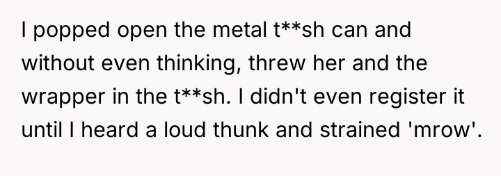 As noted by animal behavior specialist Dr. Sophia Yin, clear communication and maintaining appropriate boundaries between humans and pets are crucial for safety, especially when handling small or vulnerable animals. Accidents often stem from cognitive shortcuts or inattention, which is what appears to have occurred here when the owner treated the kitten like an inanimate object while managing trash.