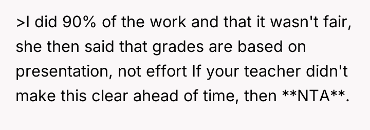 Student Challenges Teacher After Doing 90% Of Group Project But Getting Lowest Grade